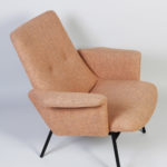 DESCRIPTION: Paire de fauteuils de Pierre Guariche, modèle SK660, circa 1953, édition STEINER, recouverts d’un tissu chiné gris et abricot de la marque Kvadrat.