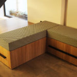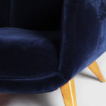 DESCRIPTION :Pair of dark blue velvet armchairs w/ natural beech feet.