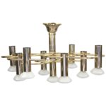 Lustre à neuf luminaires dessiné par Gaetano Sciolari.