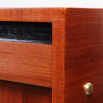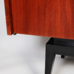 DESCRIPTION : black-tinted mahogany and rosewood sideboard. Side opening w/ buttons. Chest of 4 drawers, circa 1960.