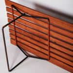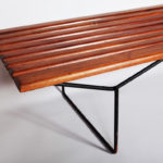 DESCRIPTION: Banc à huit lattes en acajou soutenues par des pieds en métal tubulaire laqué noir. Pièce achetée chez Knoll International (New York) en 1958.