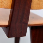 DESCRIPTION: Dossier et assise en frêne doré, piètement en acajou, montage à queue droite.