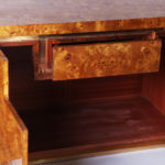 Enfilade en bois de de loupe d’orme et laiton doré, intérieur en acajou.