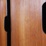 DESCRIPTION : Tall solid oak storage highboard, with tall sections featuring 3 sliding doors with handles, as well as a darkened oak door.