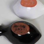 DESCRIPTION: Pair of ceramic ashtrays by Jean and René CLOUTIER, white and black enamel, both signed.