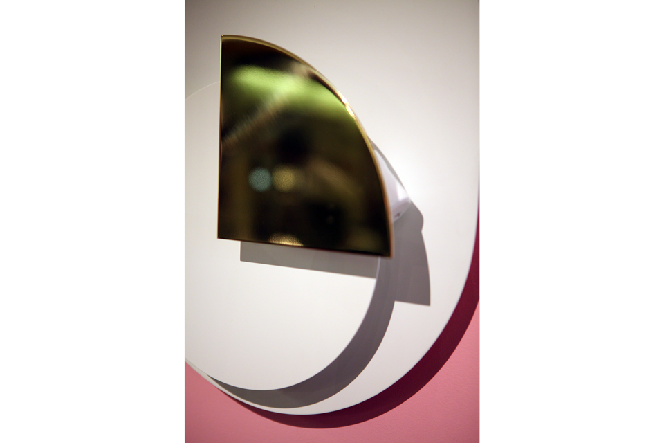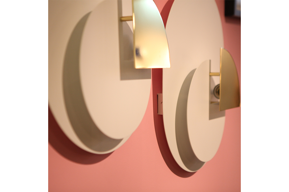 DESCRIPTION: Paire d’appliques de Giannino Crippa à un feu en métal laqué et couleur or