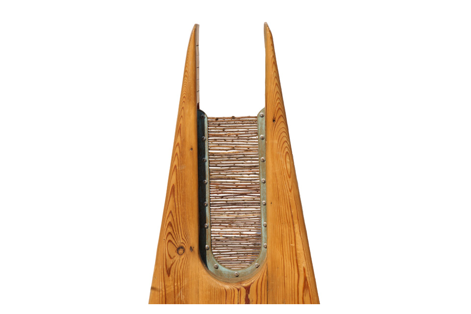 DESCRIPTION: Sculpture représentant le Vent, construite à partir de matériaux de récupération (tel planches de sapin et métal).