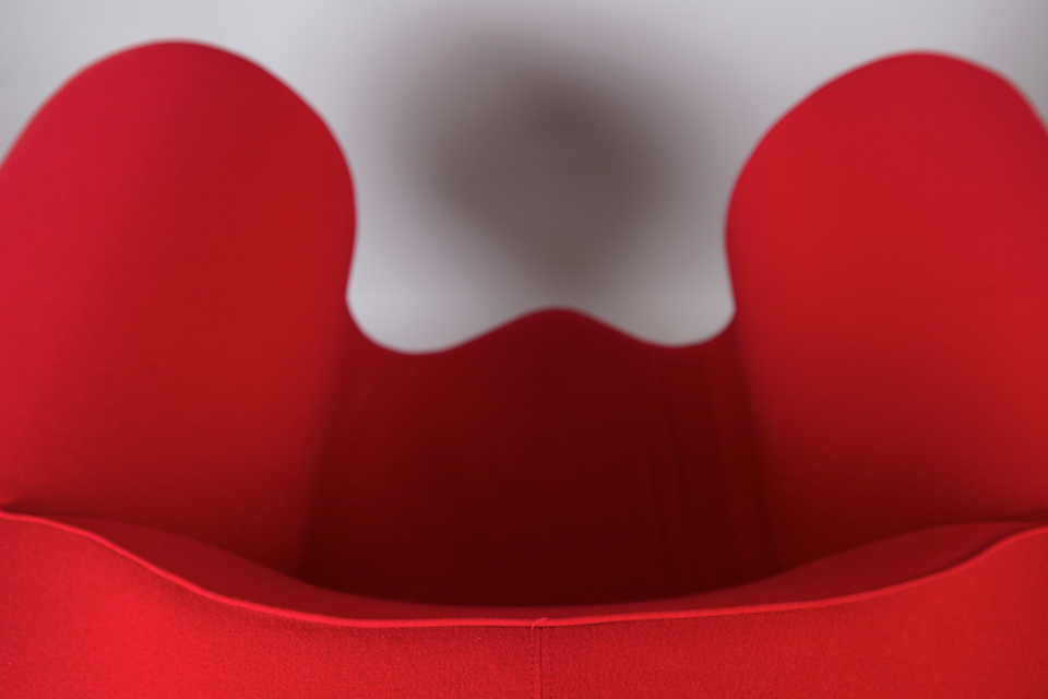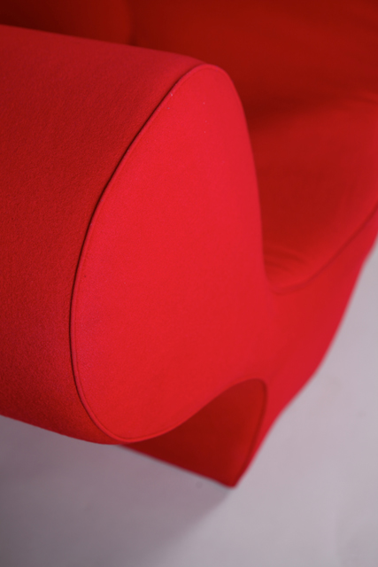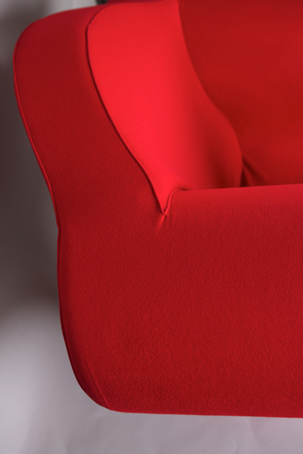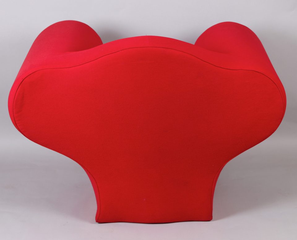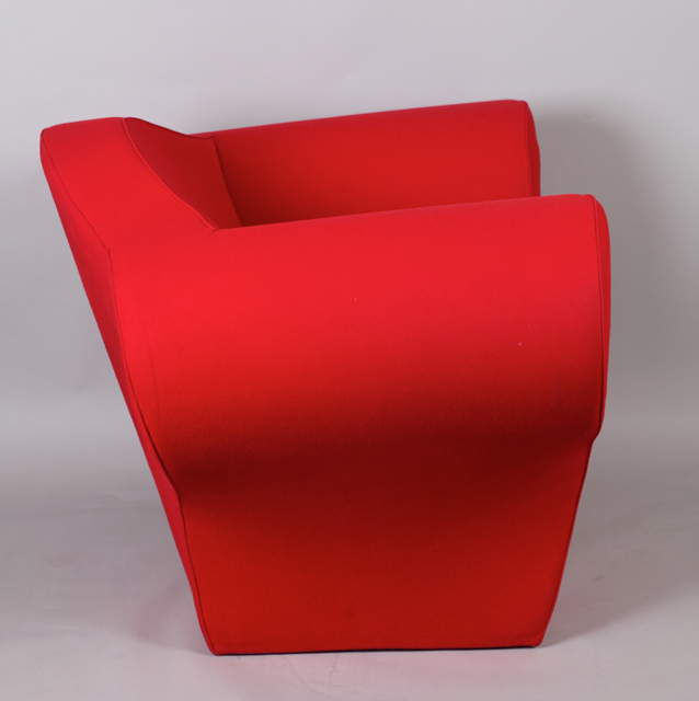 DESCRIPTION : Fauteuil modèle « Soft Big Easy Chair », 1990, en polyuréthane expansé, revêtement en textile chaîne-trame de laine grattée rouge.
