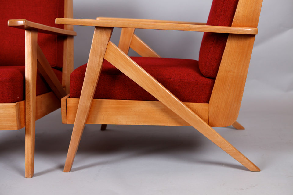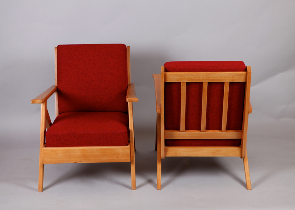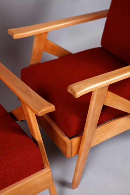 DESCRIPTION: Paire de fauteuils, structure en hêtre massif.
