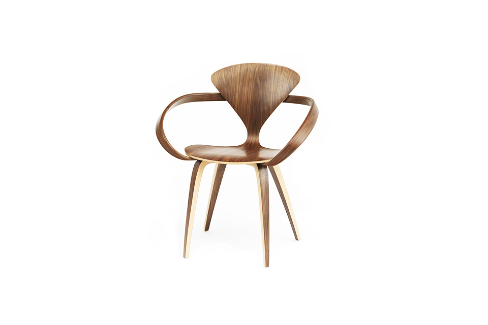 DESCRIPTION: The 1958 molded plywood armchair by Norman Cherner a midcentury icon found in design collections worldwide is now available to a new generation of furniture collectors. Reissued in exacting detail from the original drawings and molds, the armchair combines the best of both molded plywood and solid bent wood construction. Like the original, made entirely in the U.S.A.